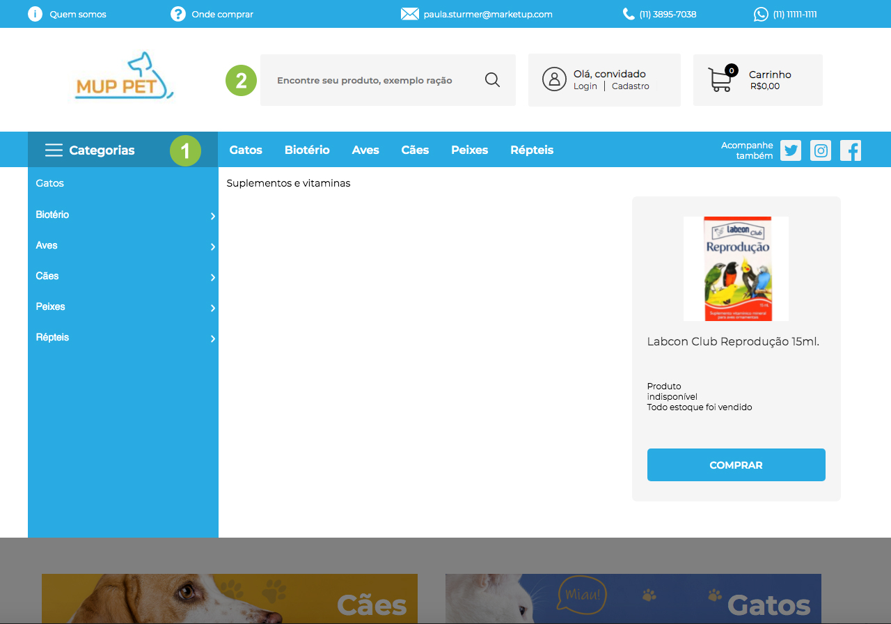 Quando você consultar um produto cujo estoque é indisponível, poderá adicionar seu e-mail e nome aos campos e enviar uma solicitação de “Avise-me quando chegar”. Com isto, você será informado quando a loja tiver este produto novamente em seu estoque.